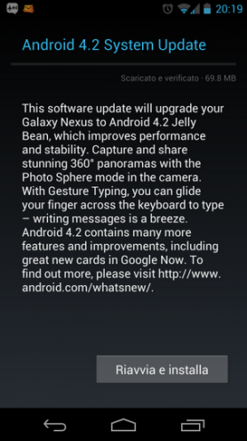 Per ora possiamo augurarvi solo buon download a tutti i possessori del Galaxy Nexus e se volete fateci sapere come vi sembra a primo impatto il nuovo aggiornamento e se trovate novità davvero interessanti da comunicarci.