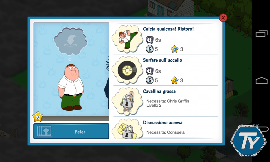 Il profilo di Peter Griffin è uno spasso assoluto. Bell’idea, ma non salva il gioco completamente. Speriamo in un qualche nuovo aggiornamento!
