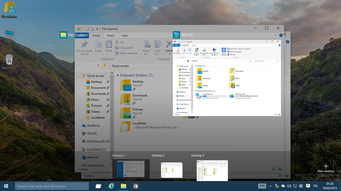 NOVITÀ DI WINDOWS 10 TECHNICAL PREVIEW